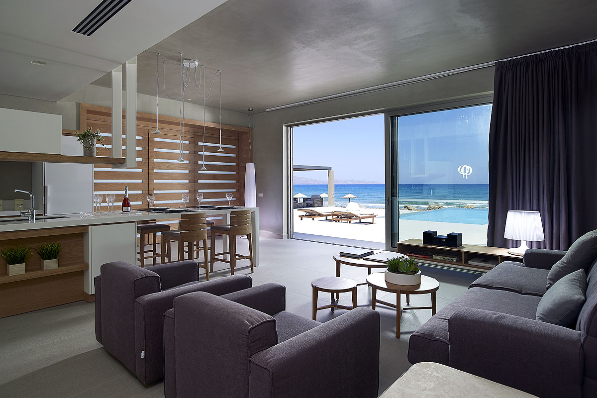 Beachfront Youphoria Estate is a complex of 2 private beachfront villas, located at Kissamos Bay. The complex can accommodate up to 15 guests in total and with just steps from the sandy beachfront of Kissamos bay is a n ideal location for corporate retreat, or wedding ceremony.