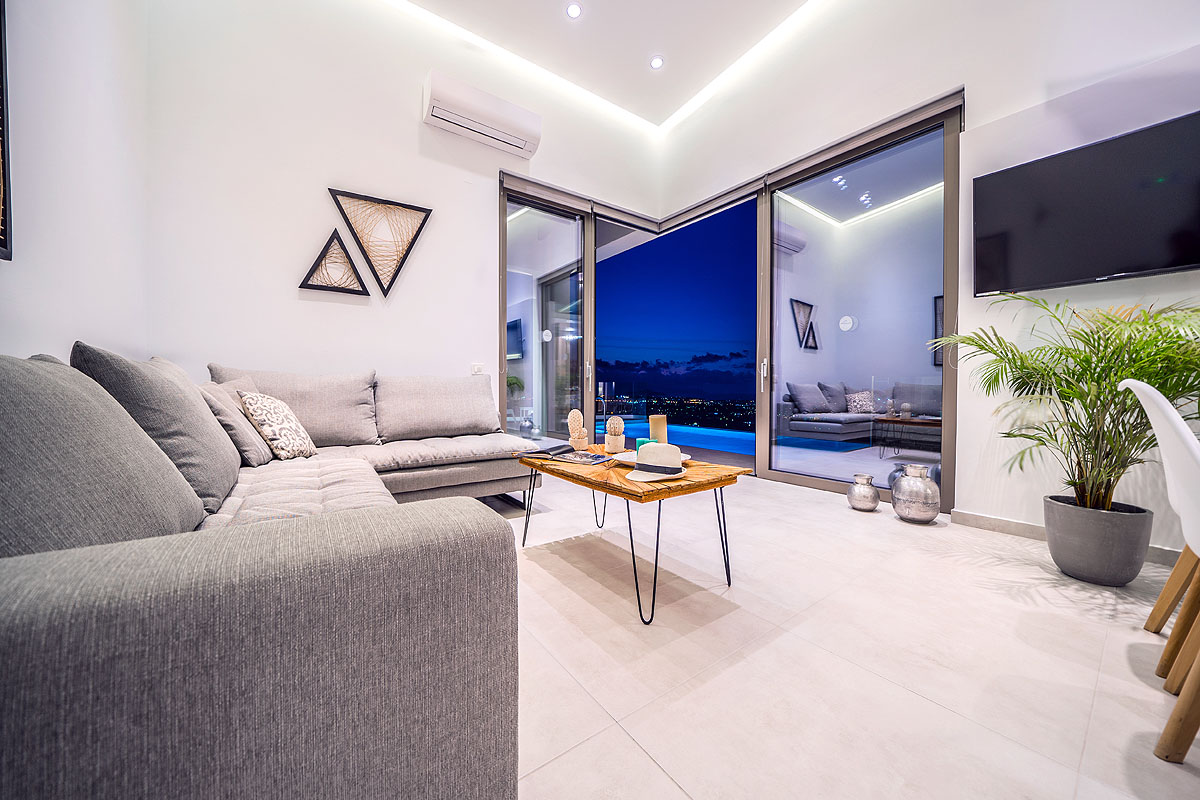 The swimming pool of the villa offers panoramic views of Souda bay with sun loungers and umbrellas. A sitting area with a Television and sound speakers as well a dinning BBQ area are available to enjoy during your stay.