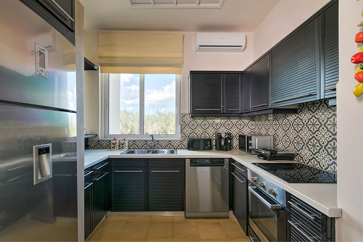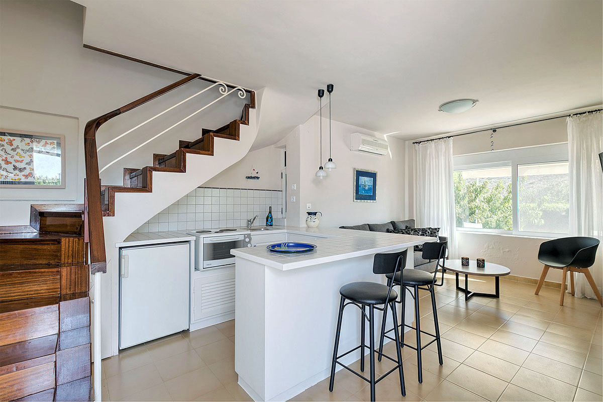 The villa includes two fully equipped kitchens with a big and a small refrigerator, a dish washer, a washing machine, a microwave oven, a water boiler, etc. There are interior stairs, five bedrooms with new anatomic mattresses, 26cm thick., two living rooms (a large and small one), two dining rooms with flat screen TV sets in each room that include all the satellite channels and also, three fully equipped indoor bathrooms plus αn outdoor one. All the rooms are equipped with air-conditioning and also have central heating and a fireplace for the winter, so the villa is suitable for quests all year round. The Villa is fully renovated, with new, modern electrical appliances to make your stay convenient and functional.