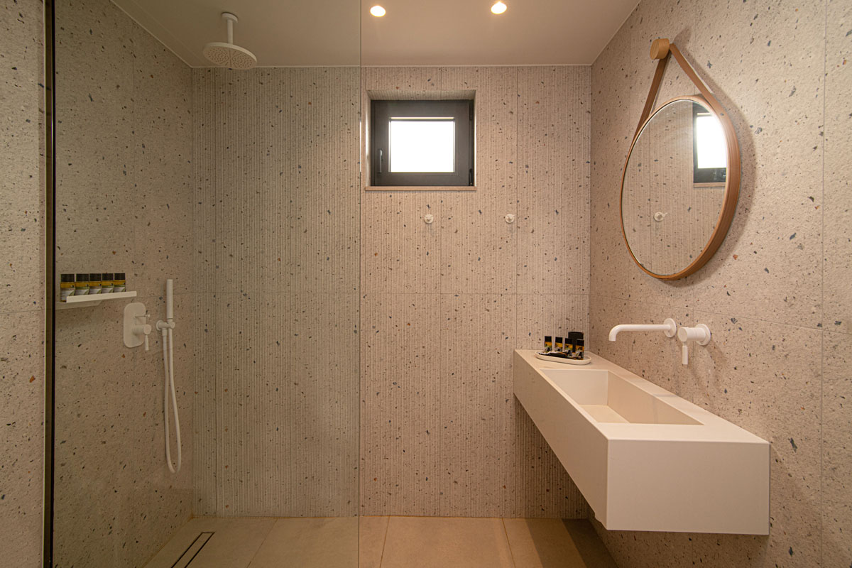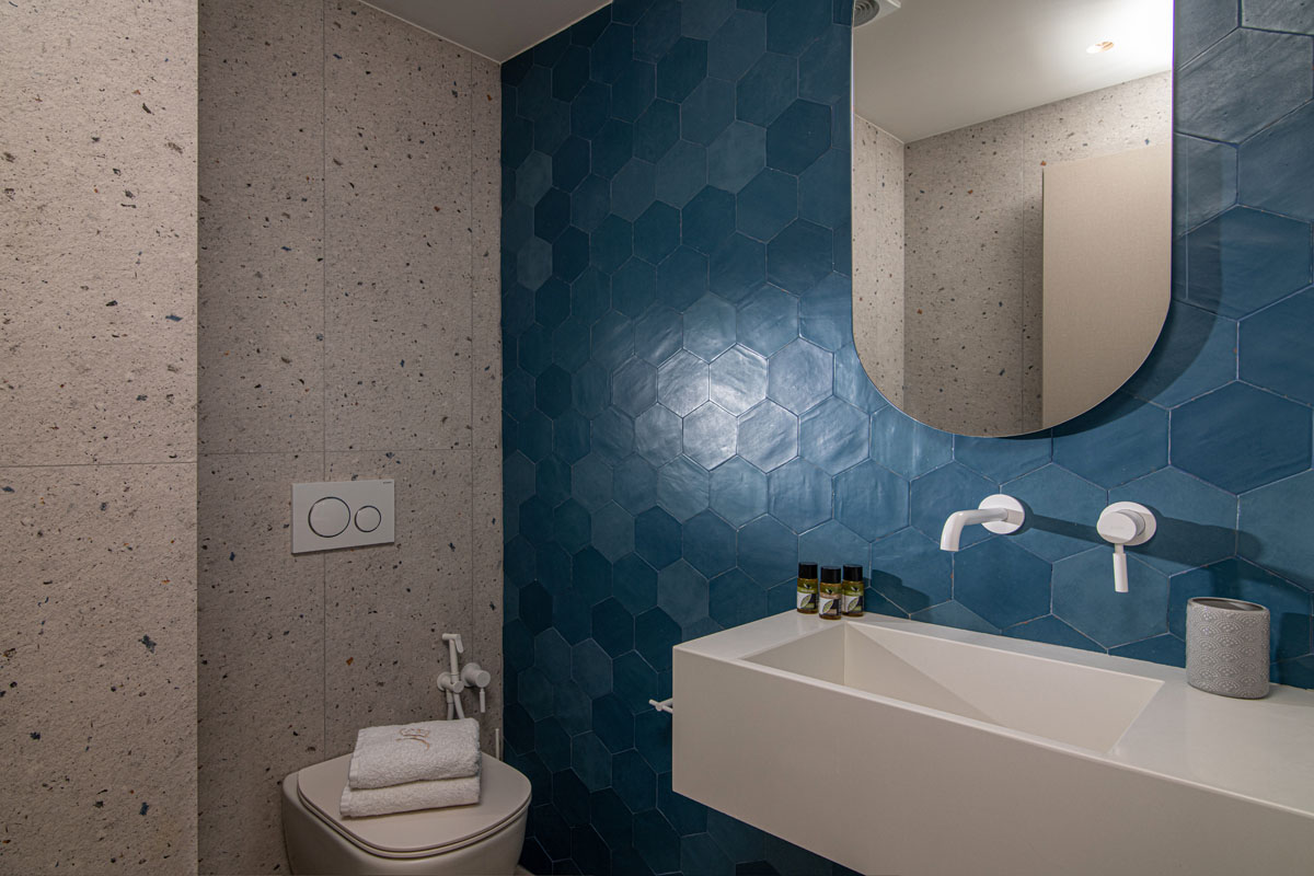 Two of the bedrooms offer double beds, and private en-suite bathrooms with shower enclosures, whereas the third bedroom has a single bed and a WC. All bedrooms have access to the beautiful outdoor area where the pool is.