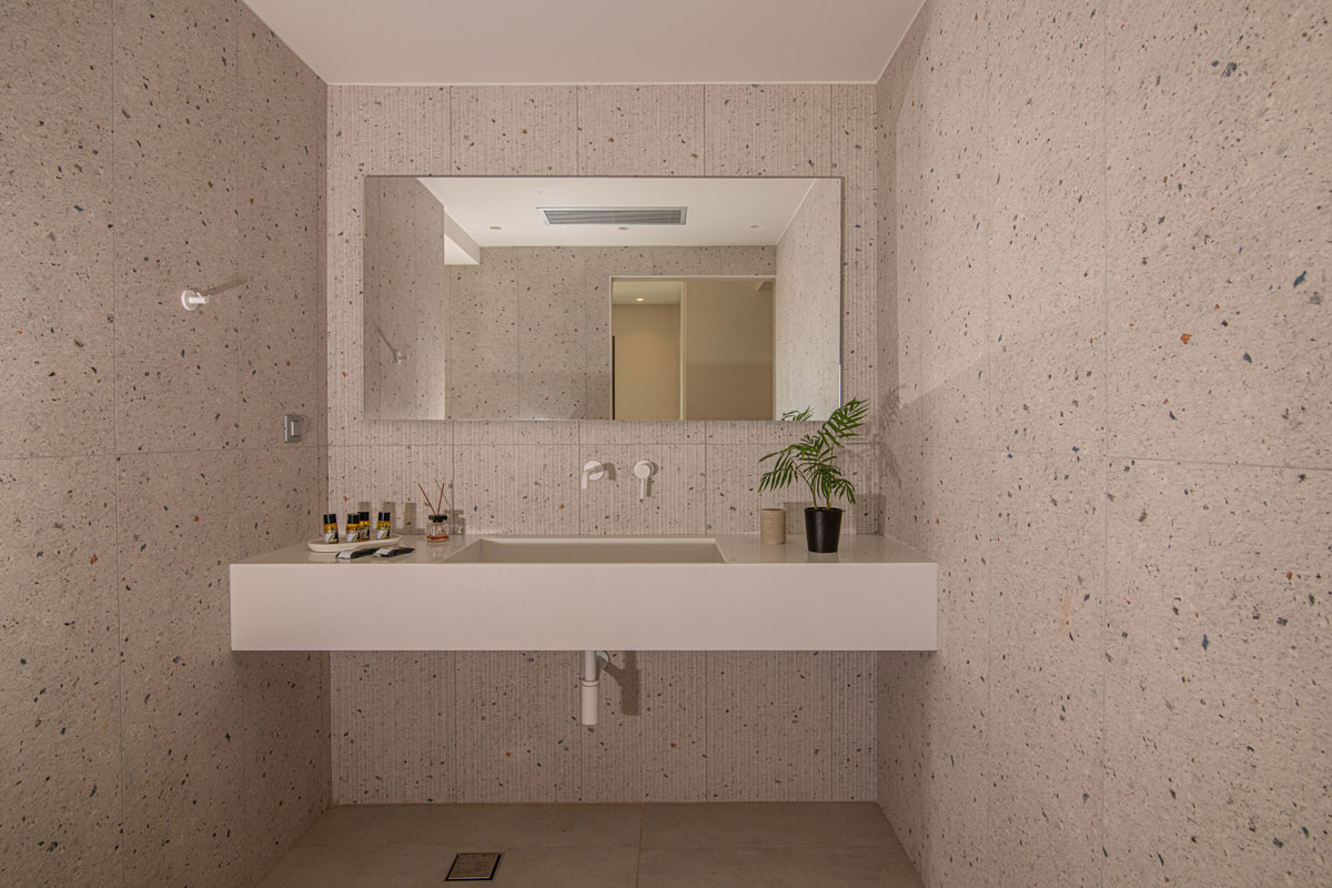 The lower- pool level features a second living area with a sofa bed that can convert into two single beds, a spacious laundry room and three bedrooms, each offering a tranquil sanctuary for relaxation and rejuvenation.