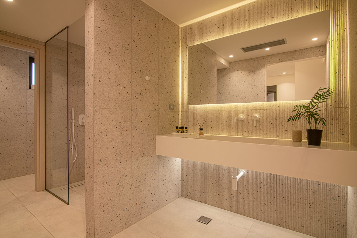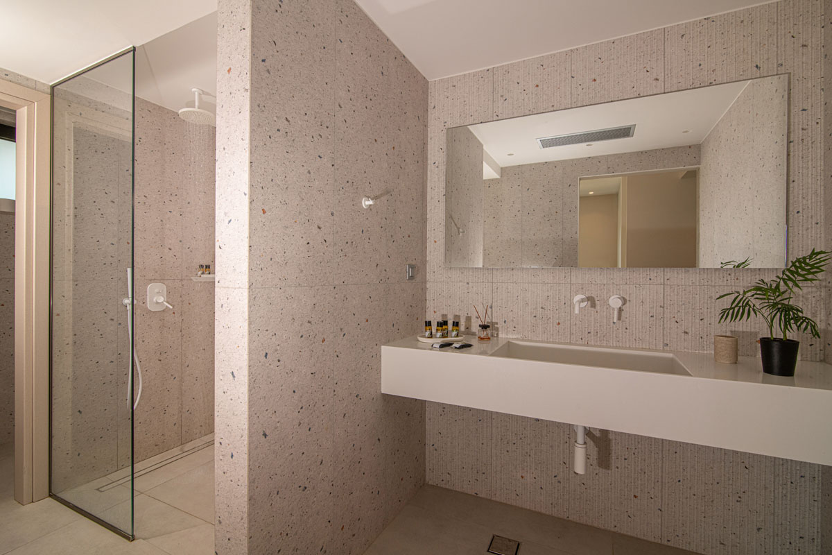 On this level you will find the living room, a fully equipped kitchen, a WC and a huge veranda with a sitting and dining area. The interior boasts a tasteful combination of sleek lines and minimalist decor creating an ambiance of refined elegance and comfort.
