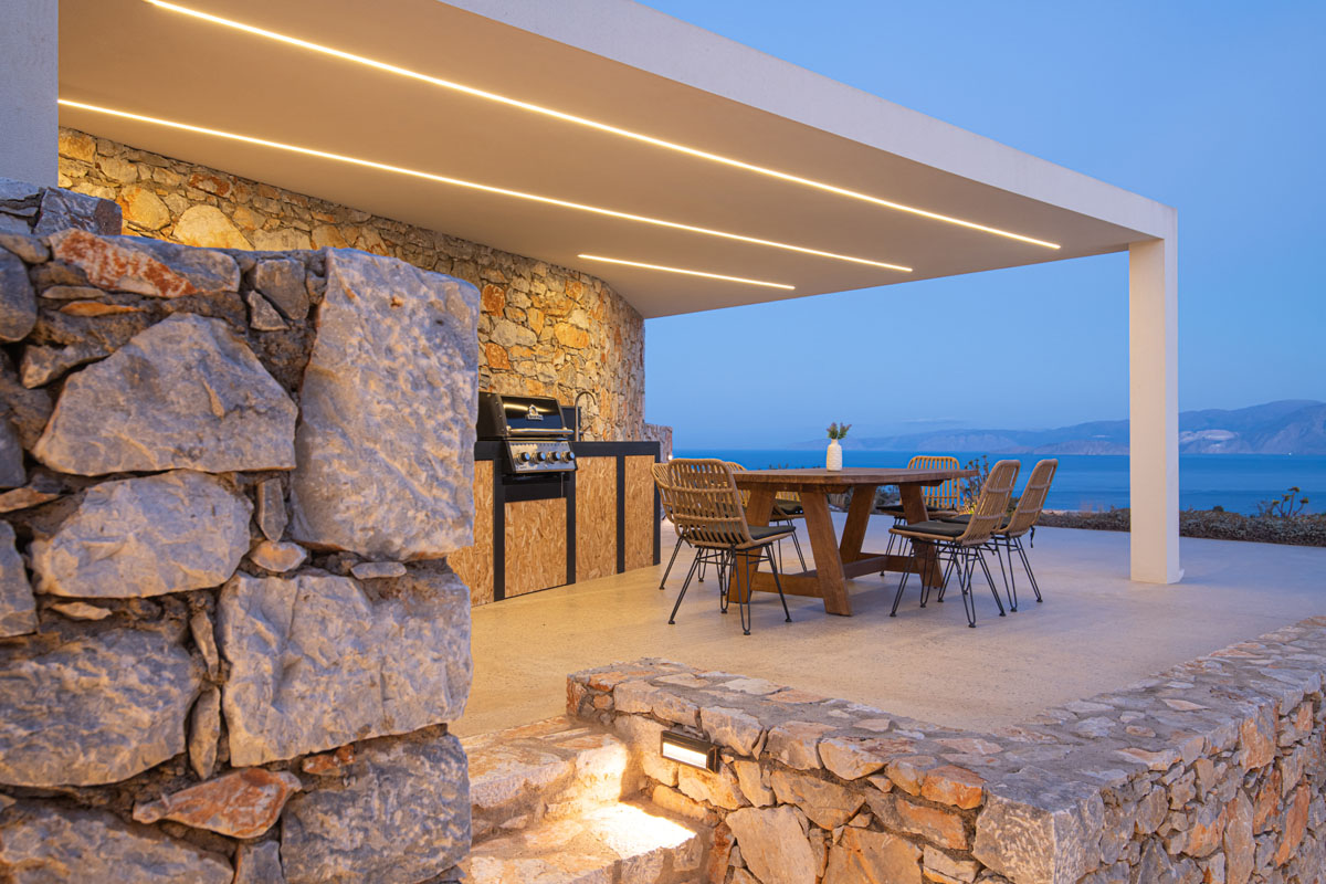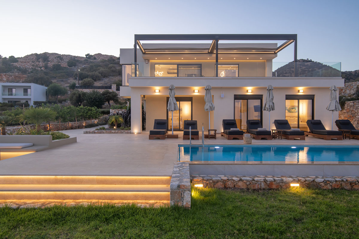 As you approach the villa, you are immediately captivated by its modern and elegant design that seamlessly blends with its natural surroundings, creating a harmonious fusion of contemporary style and the beauty of the Cretan landscape.