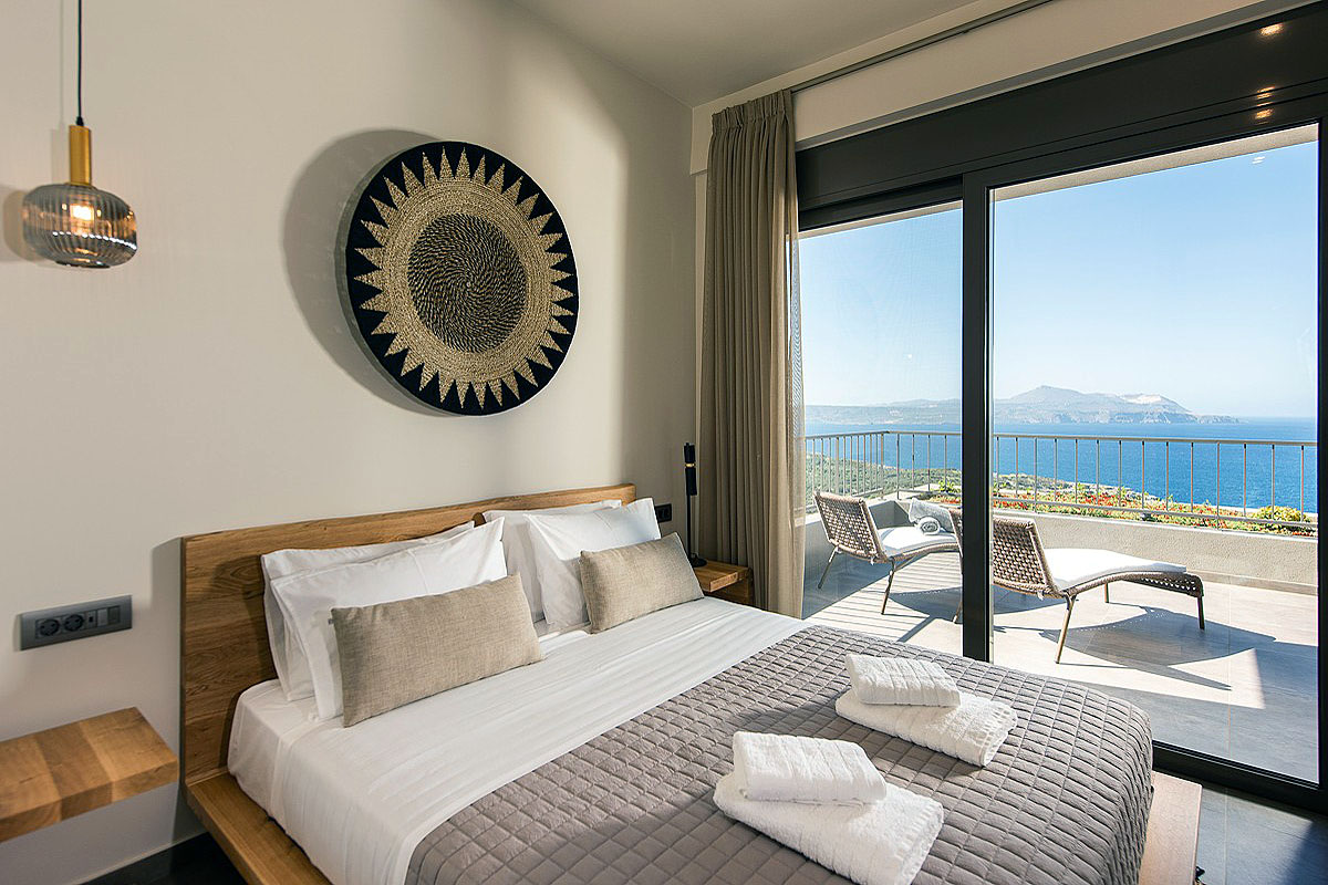 Set on two floors, the villa has been designed to take advantage of the magnificent scenery and the thoughtful layout offers superb views from the bedrooms and living areas. The upper floor and main entrance area to the house feature 2 double bedrooms with large balconies. The lower floor features a further double bedroom, a spacious open plan living area, and access to the swimming pool and outdoor dining and terraces.