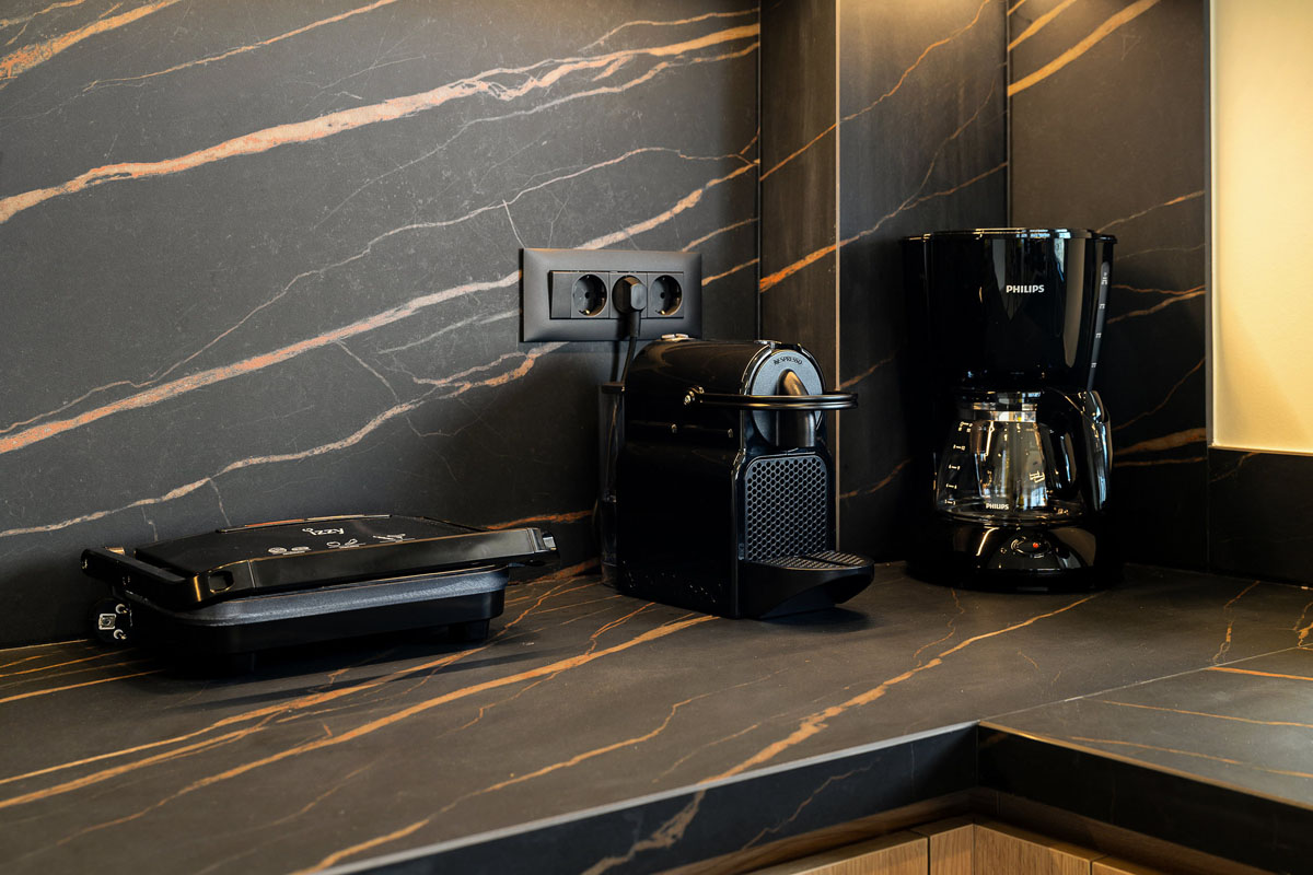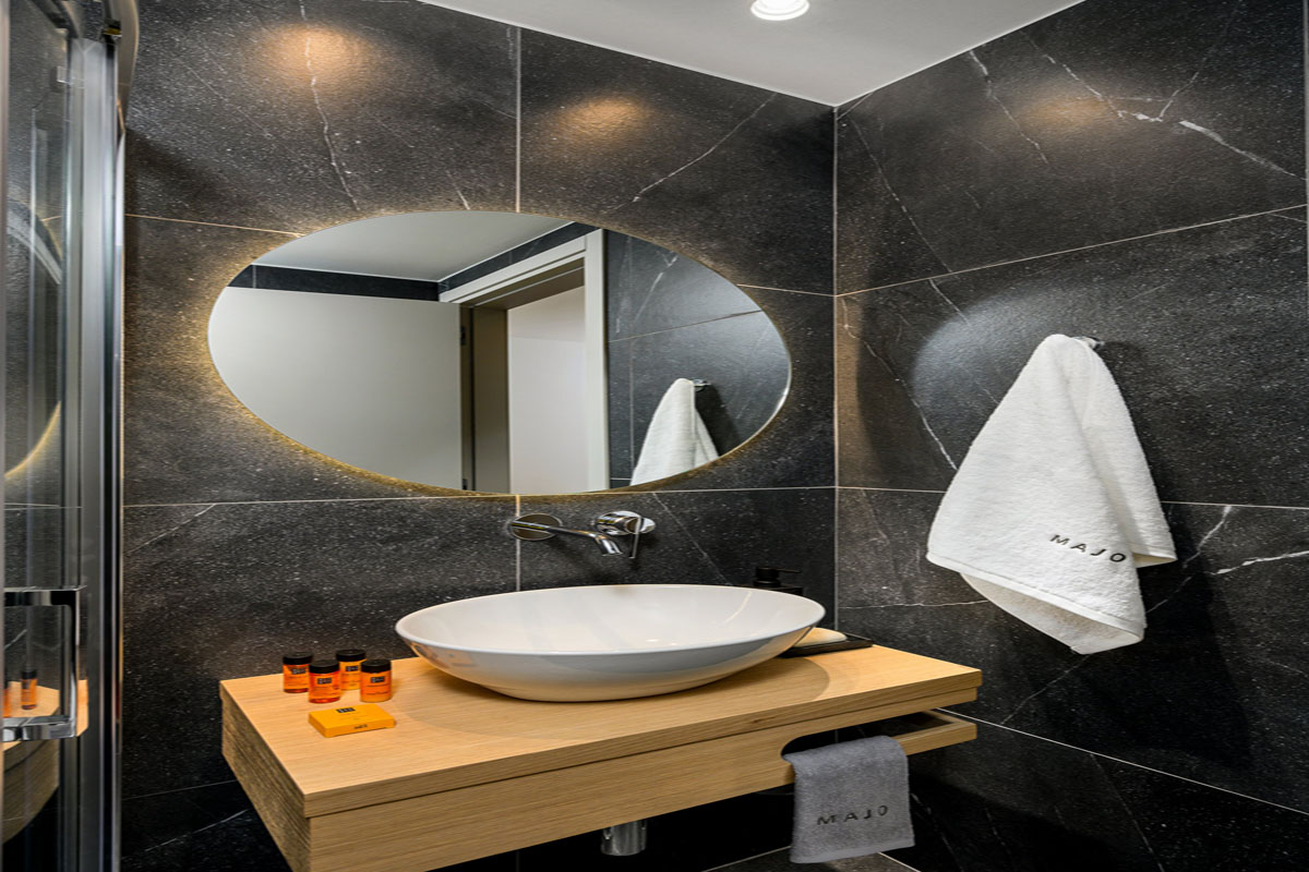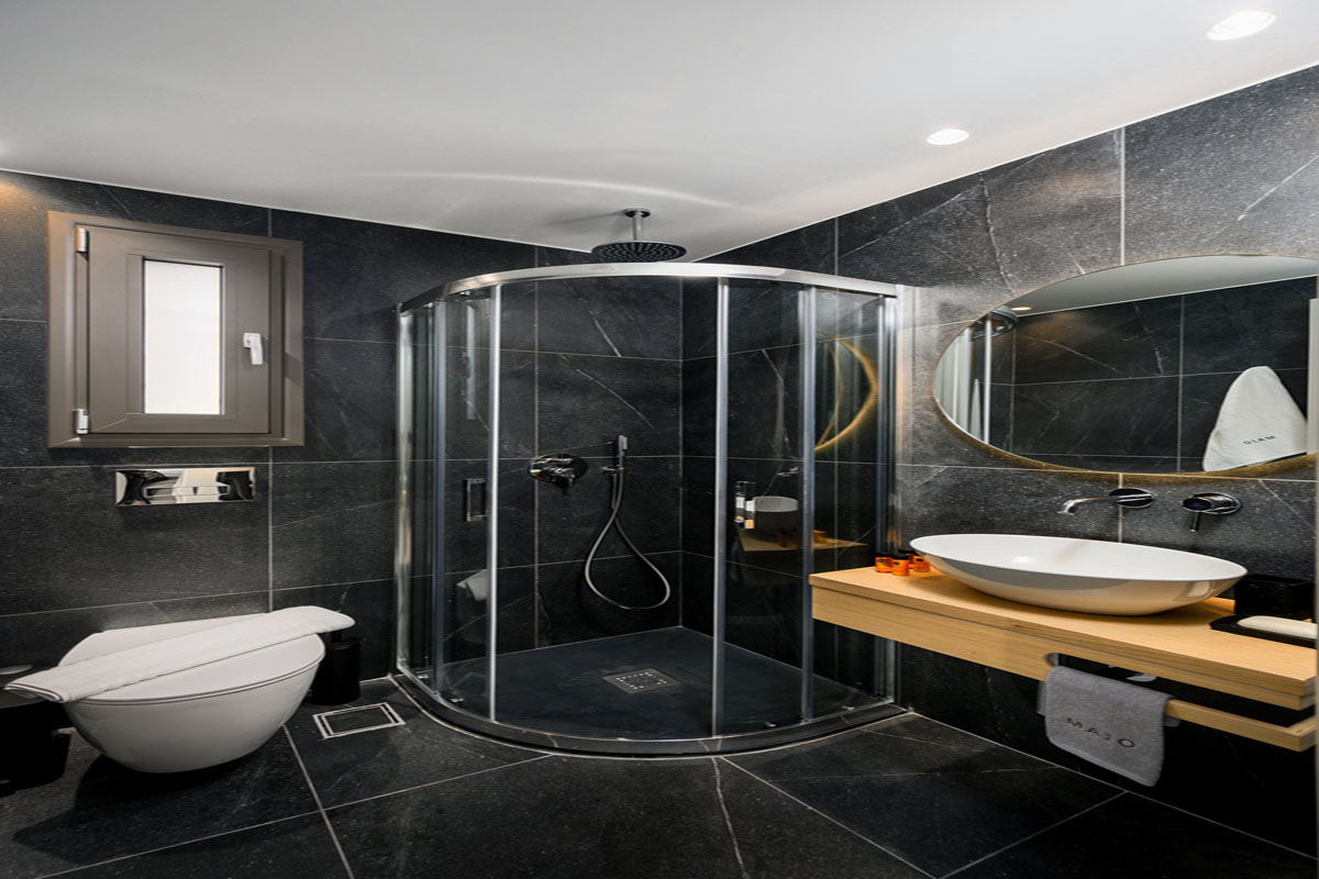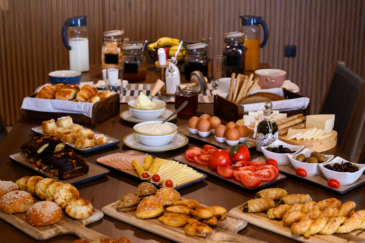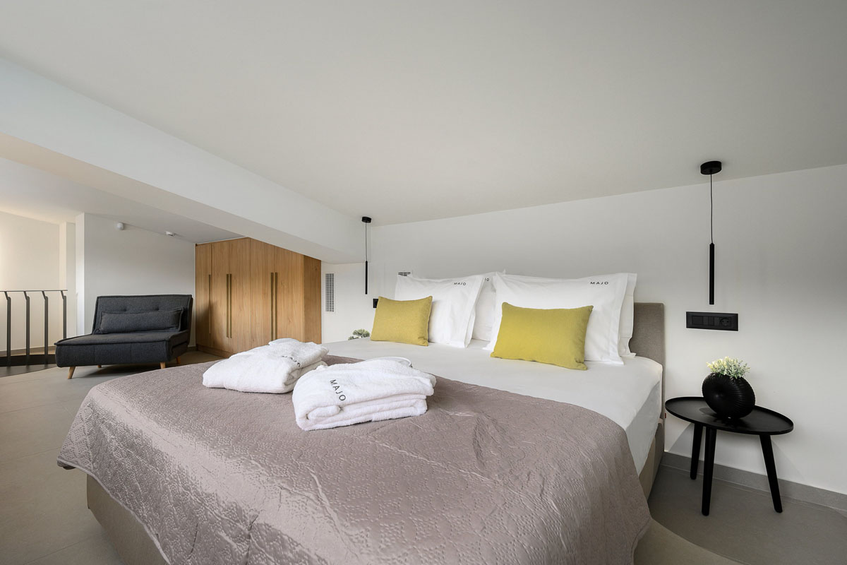 All rooms include ensuite bathrooms, smart TVs, air conditioning, Wi-Fi, and plush bedding. An elevator and stair lift ensure accessibility for guests with special needs. Guests are welcome to enjoy our beautifully designed shared dining area and wine cellar, where breakfast is served daily upon request (extra charge) a refined space that combines Cretan flavors, fine wines, and elegant atmosphere.