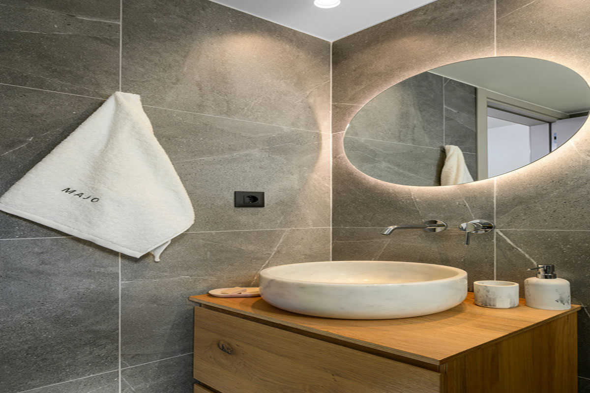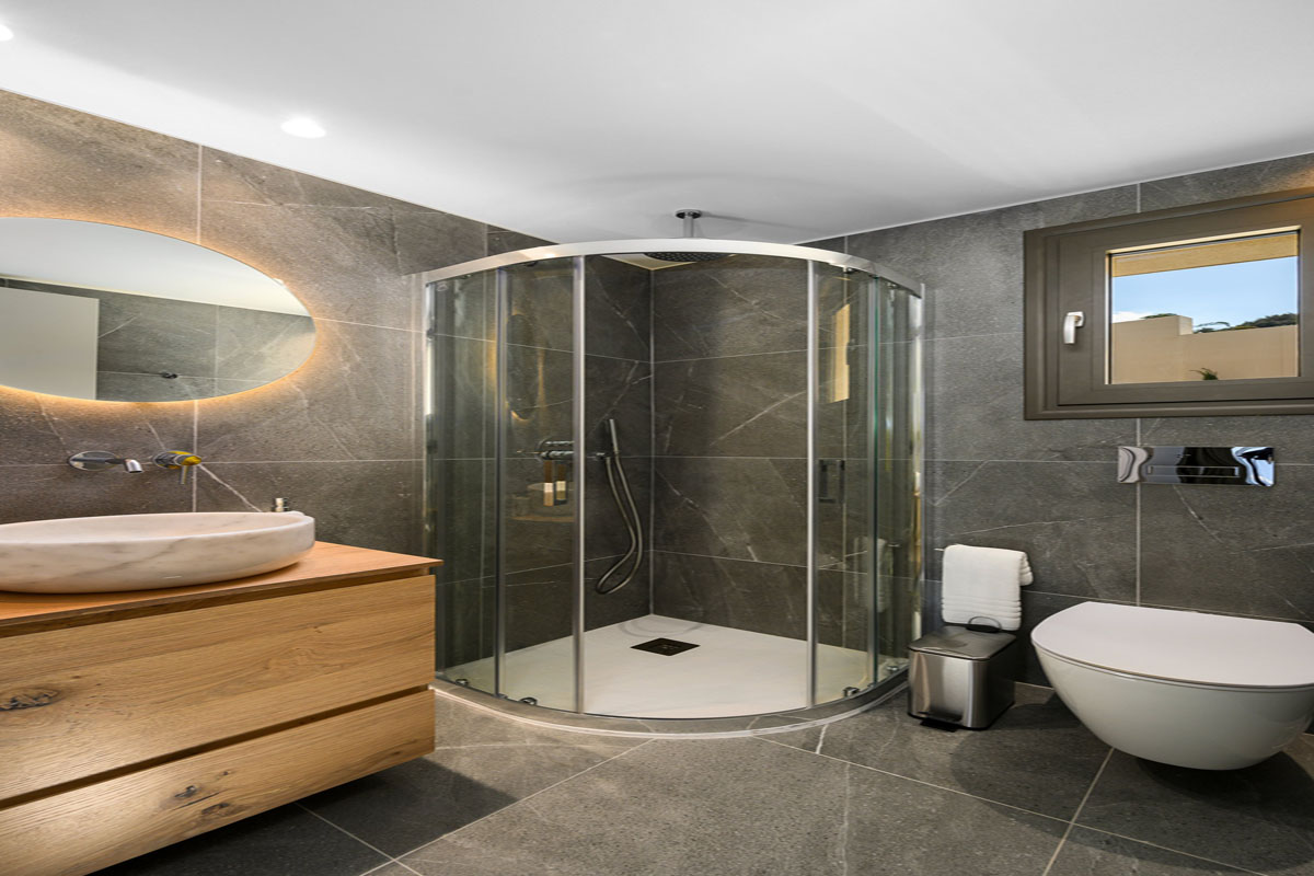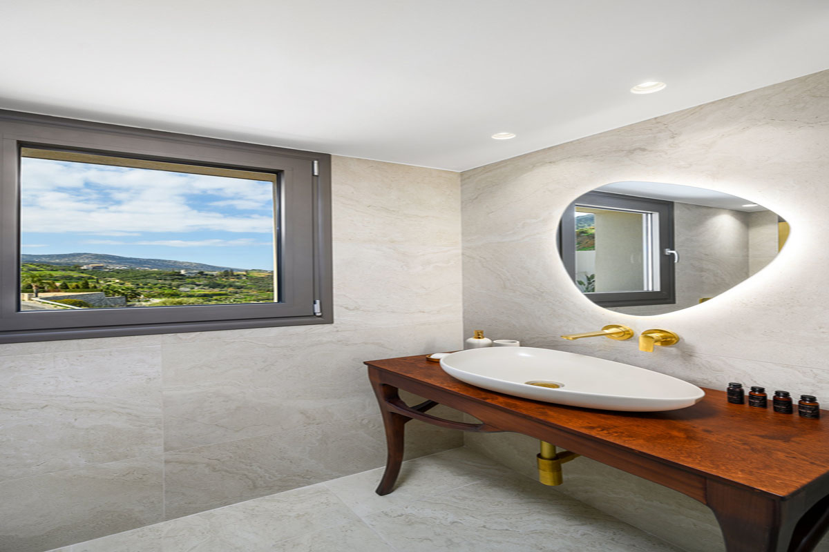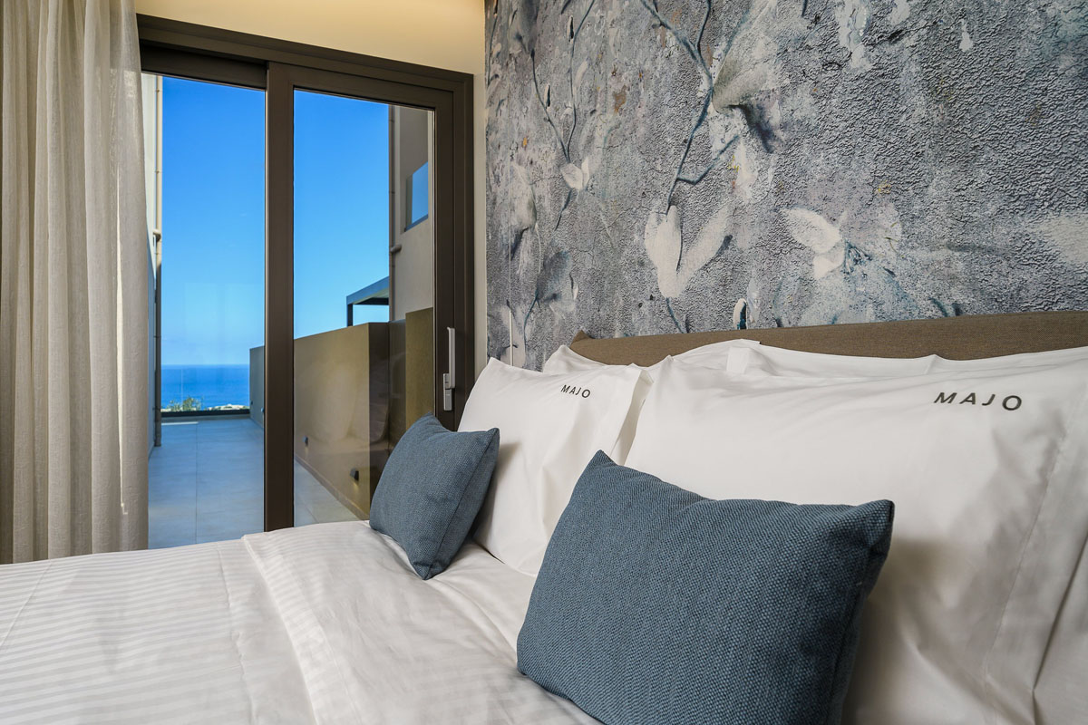 Majo Kyma Villa is a 6 bedroom sea view villa located in Agia Pelagia, Heraklion. Covering 370 sqm of interior space and a total of 550 sqm including outdoor areas, this villa combines comfort and elegance in every detail. Just a 10-minute walk from Agia Pelagia Beach, your dream villa awaits you welcome to Majo Kyma Villa, a luxurious seaside retreat where elegance meets tranquility on the sun-kissed island of Crete. Part of the renowned Majo Luxury Villas Collection, Kyma redefines comfort and sophistication, offering panoramic sea views, exclusive wellness facilities, and seamless accessibility for all guests. Step inside and feel the serenity of minimal design blended with warm natural tones.