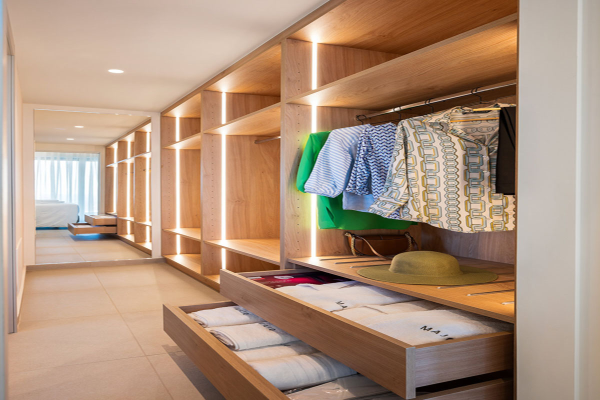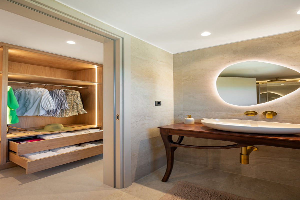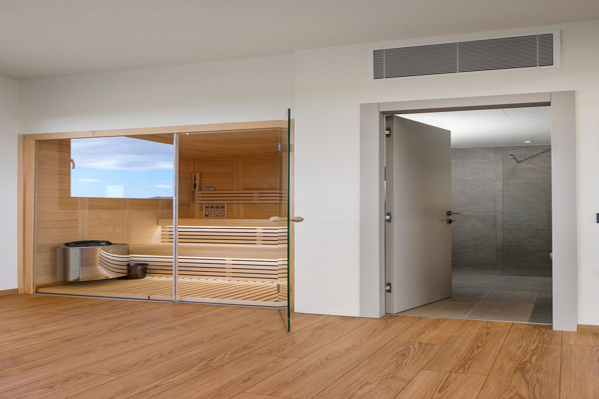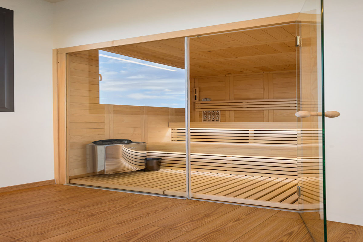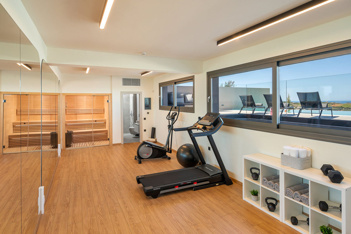 Unwind in one of the multiple outdoor lounge areas, surrounded by lush gardens, Led-lit pergolas, and a panoramic dining terrace ideal for alfresco dinners under the stars. Mind in your private gym overlooking the sea, featuring premium fitness equipment (treadmill, weights, bike). Then indulge in pure relaxation in your Finnish-style wooden sauna, the ultimate after-sun ritual.