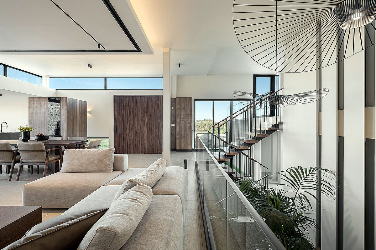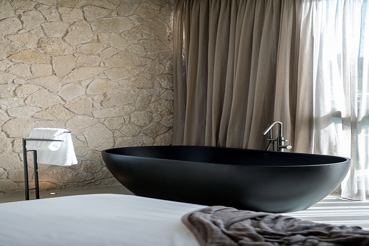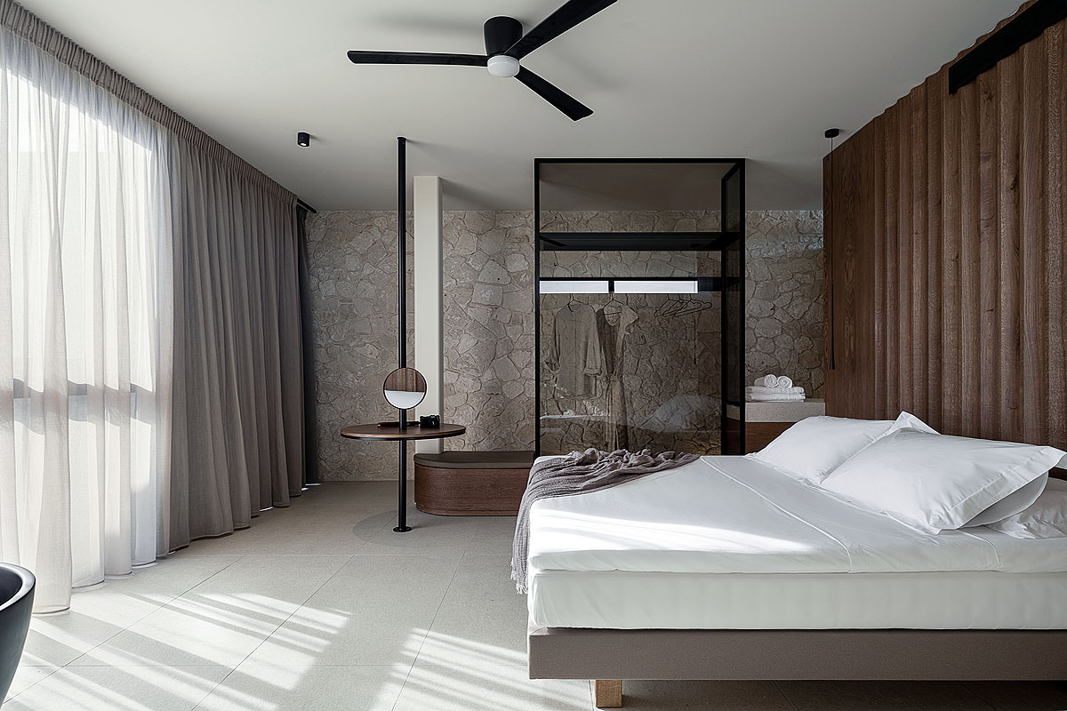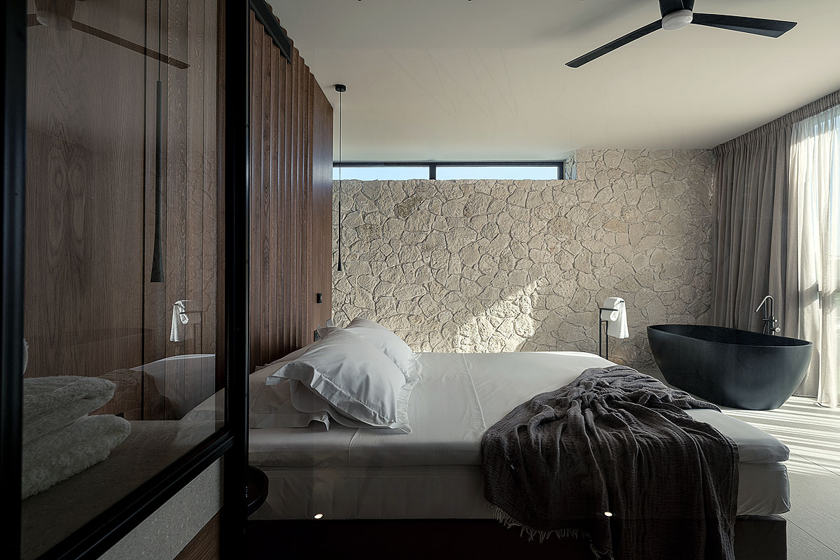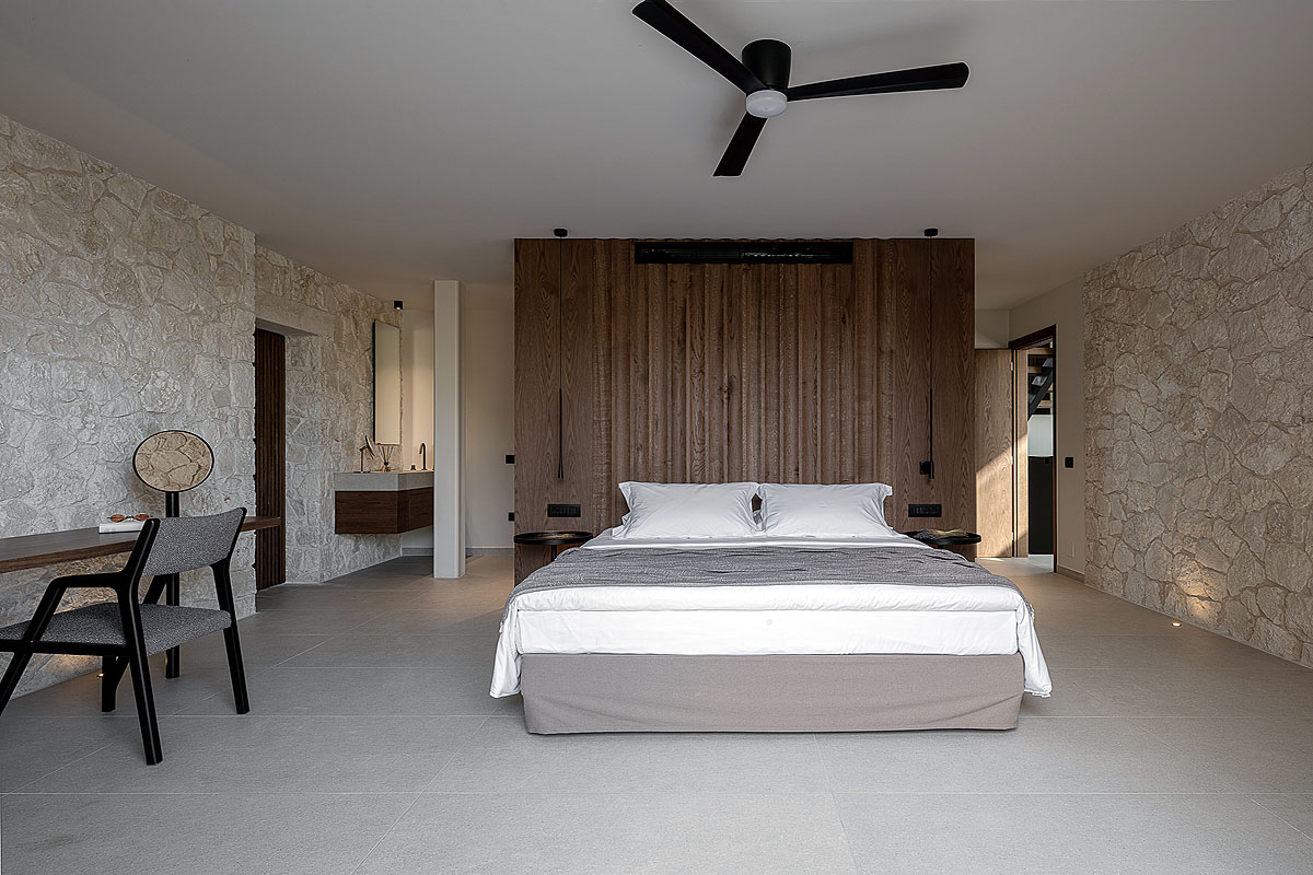 The villa has 4 bedrooms and 5 bathrooms, which can accommodate up to 10 people in 350 sqm and it extends over 3 levels.