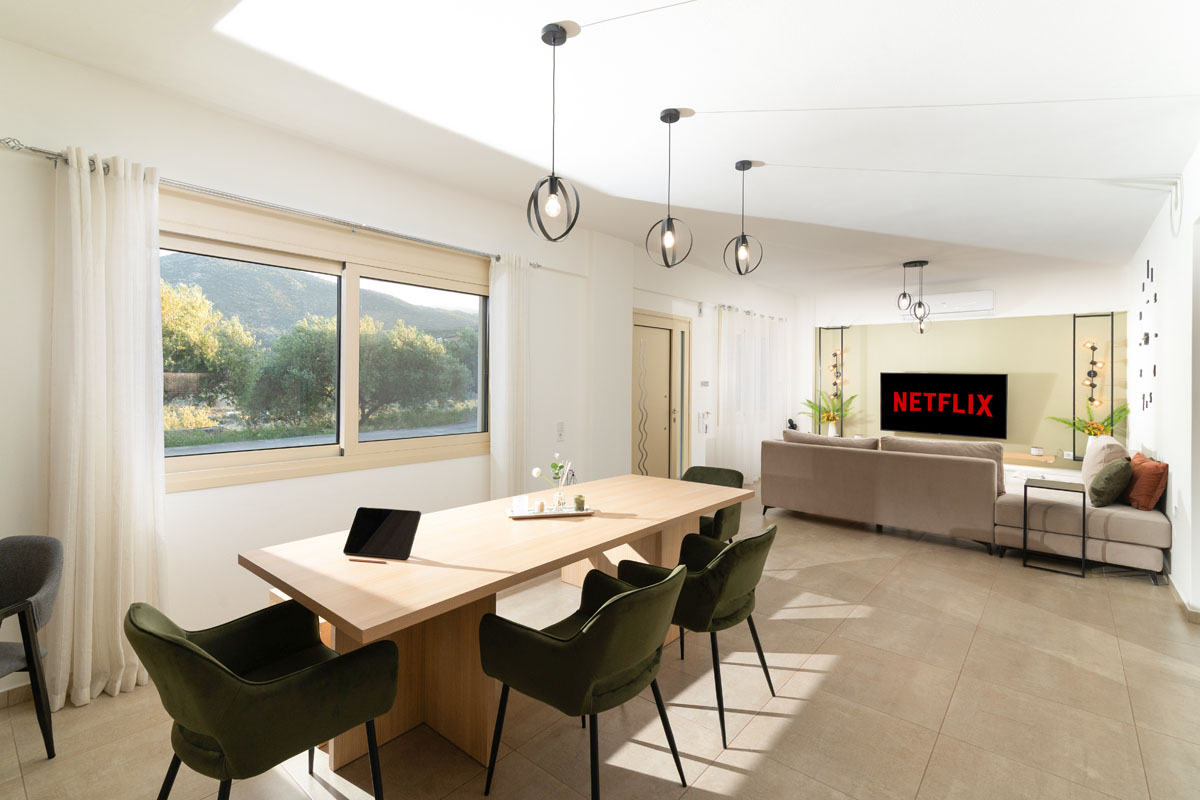 This brand-new, spacious 130 m² apartment (built in 2023) is located in a quiet residential neighborhood, just a 5-minute drive from the vibrant town center. It’s the perfect base for families, groups of friends, couples or professionals who want to enjoy comfort, relaxation and the warm feeling of home, while experiencing authentic moments in one of Crete’s most charming destinations.