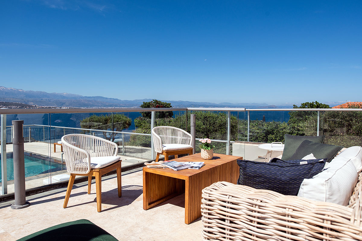 Seacrete Villa 1 is built on three levels and located at the hihest point of the plot. It has views to the entire Akrotiri Peninsula and the town of Chania the perfect place to watch the sunrise and the sunset,