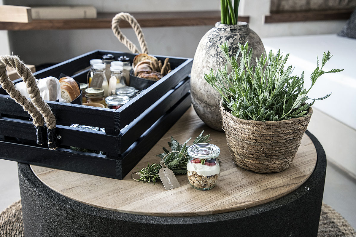 Offering a wonderfully-appointed interior, our Loft Suite with Outdoor Jacuzzi offers breath-taking views and endless comfort, nestled within the lush nature of the Sand Suites. Give yourself a moment of relaxation, forget your routine and simply let go within its premises. Natural materials like stone and wood, eclectic pieces of furniture and art, a palette of muted greys and beiges, and a bohemian feel throughout, all combine to make your suite a uniquely compelling place to be. They feature a bedroom with a queen bed, an upper floor that is accessible by stairs only, a luxurious bathroom, a balcony and an outdoor Hot Tub overlooking the beautiful garden.