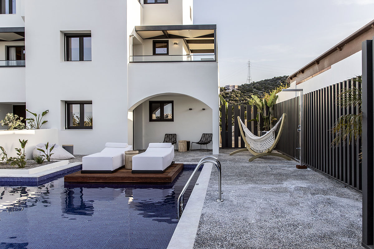 Unique Suite with Private Swimming PoolOffering a wonderfully-appointed interior, our Unique Suite with Private Swimming Pool offers breath-taking views and endless comfort, nestled within the lush nature of the Sand Suites. Give yourself a moment of relaxation, forget your routine and simply let go within its premises. Natural materials like stone and wood, eclectic pieces of furniture and art, a palette of muted greys and beiges, and a bohemian feel throughout, all combine to make your suite a uniquely compelling place to be. They feature a bedroom with a queen bed, a spacious living room with a sofa bed, a luxurious bathroom, a balcony and patio and a private swimming pool overlooking the magnificent view of the sea and the city