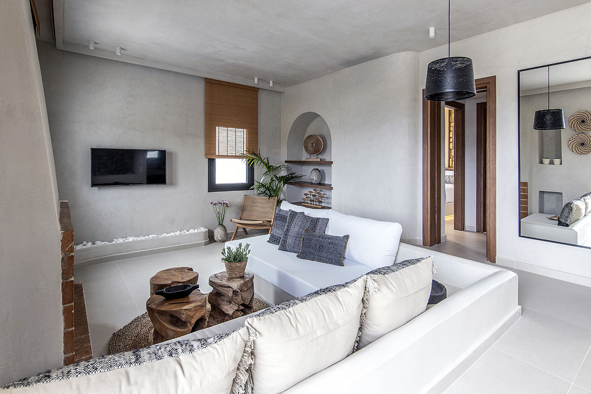 Offering a wonderfully-appointed interior, our Junior Suite with Private Swimming Pool offers breath-taking views and endless comfort, nestled within the lush nature of the Sand Suites. Give yourself a moment of relaxation, forget your routine and simply let go within its premises. Natural materials like stone and wood, eclectic pieces of furniture and art, a palette of muted greys and beiges, and a bohemian feel throughout, all combine to make your suite a uniquely compelling place to be. They feature a bedroom with a queen bed, a luxurious bathroom and a private swimming pool overlooking the magnificent view of the sea