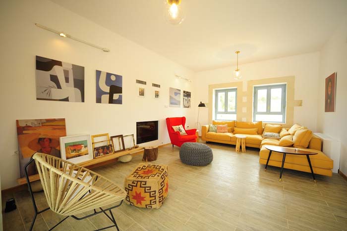 The villa’s interior is beautifully decorated with artworks of famous Greek painters, creating a luxurious and cosy atmosphere.