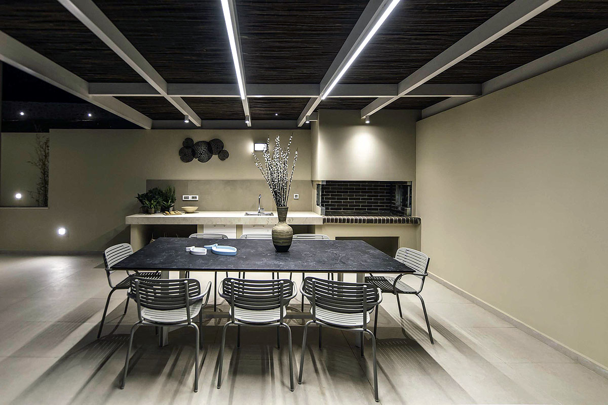 Villa Mare is a two-storey villa consisting of three bedrooms, two of which are located on the first floor with the other one. The bathrooms on the first floor are ensuite with showers. On the ground floor, there is another bedroom. Luxury and modern design complete the scenery of contemporary architecture and high-quality products. On the ground floor, there is a spacious open area with a fully equipped kitchen, a dining area, a living room with modern furnishings, and a big flat-screen smart TV with satellite channels. The large doors open onto the veranda and pool area, providing a seamless transition between the indoor and outdoor areas.