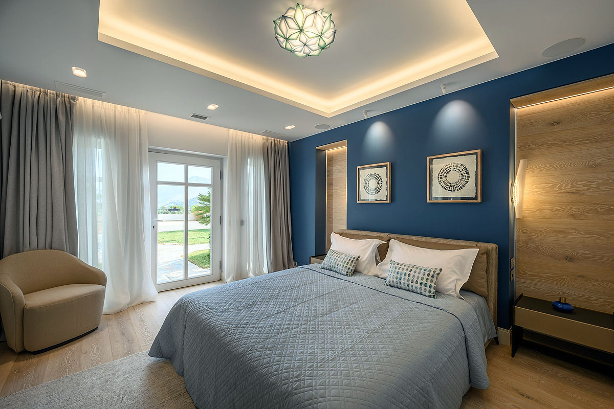 Villa Myrto comprises a large 5-bedroom villa and a spacious 1-bedroom guest house connected with a private path that goes through the gardens. The smart design ensures the family can enjoy their privacy and comfort while also providing them with the opportunity to host additional family members or invite friends. Thanks to its elevated location, the luxury Villa Myrto offers superb panoramic sea views, including the breathtaking view from the infinity pool. For guests fancying a dip into the sea, the heated infinity pool is located a mere 3-minute walk from the private beach. Upon entering the villa, a spacious entrance hall leads into five master bedrooms, each equipped with a king-size bed, a walk-in dressing room, and an en-suite bathroom. Guests can enjoy quiet evenings in the modern, superbly decorated living and dining area, indulging in local treats prepared in the open kitchen, or share a bottle of wine by the fireplace. Spacious outdoor terraces, a gym, and a massage room complete the interior.