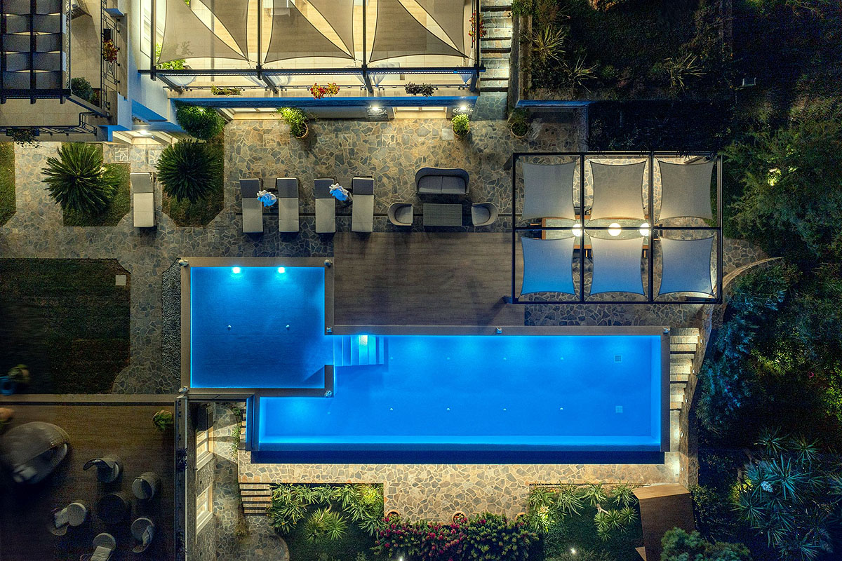 Villa Myrto is an outstanding private estate for families, looking for a luxury, seaside experience with an emphasis on privacy thanks to the lush greenery inside the garden. The heated infinity pool is situated in front of the villa, with independent access to each of the three bedrooms on the lower floor. The recreation area is equipped with parasols and comfortable lounge chairs, and guests can also find a massage room and a gym with all amenities.