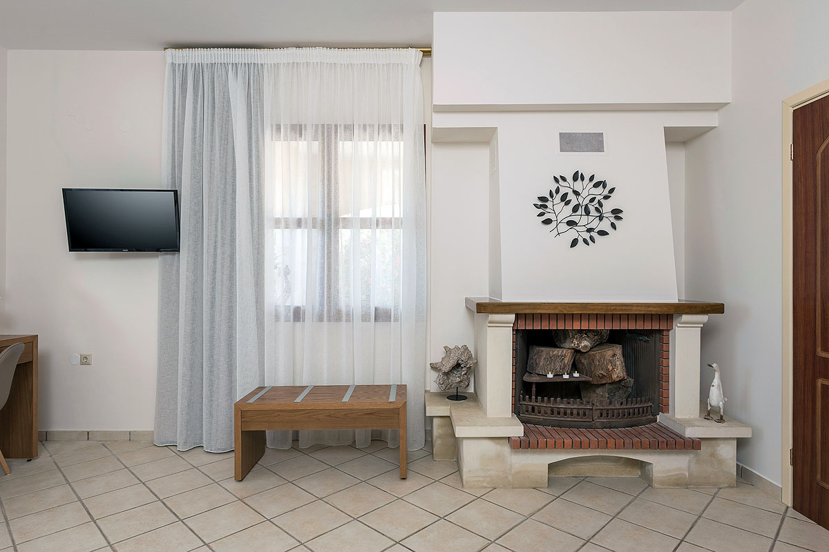 Villa Rose is 250sqm and built on three floors. On the ground floor you will find a living room with a fireplace, a dining area, fully equipped kitchen and a WC. The living room has a sofa that can turn into a double bed according to the guests’ needs.