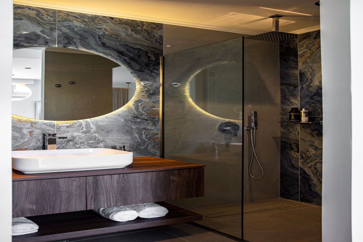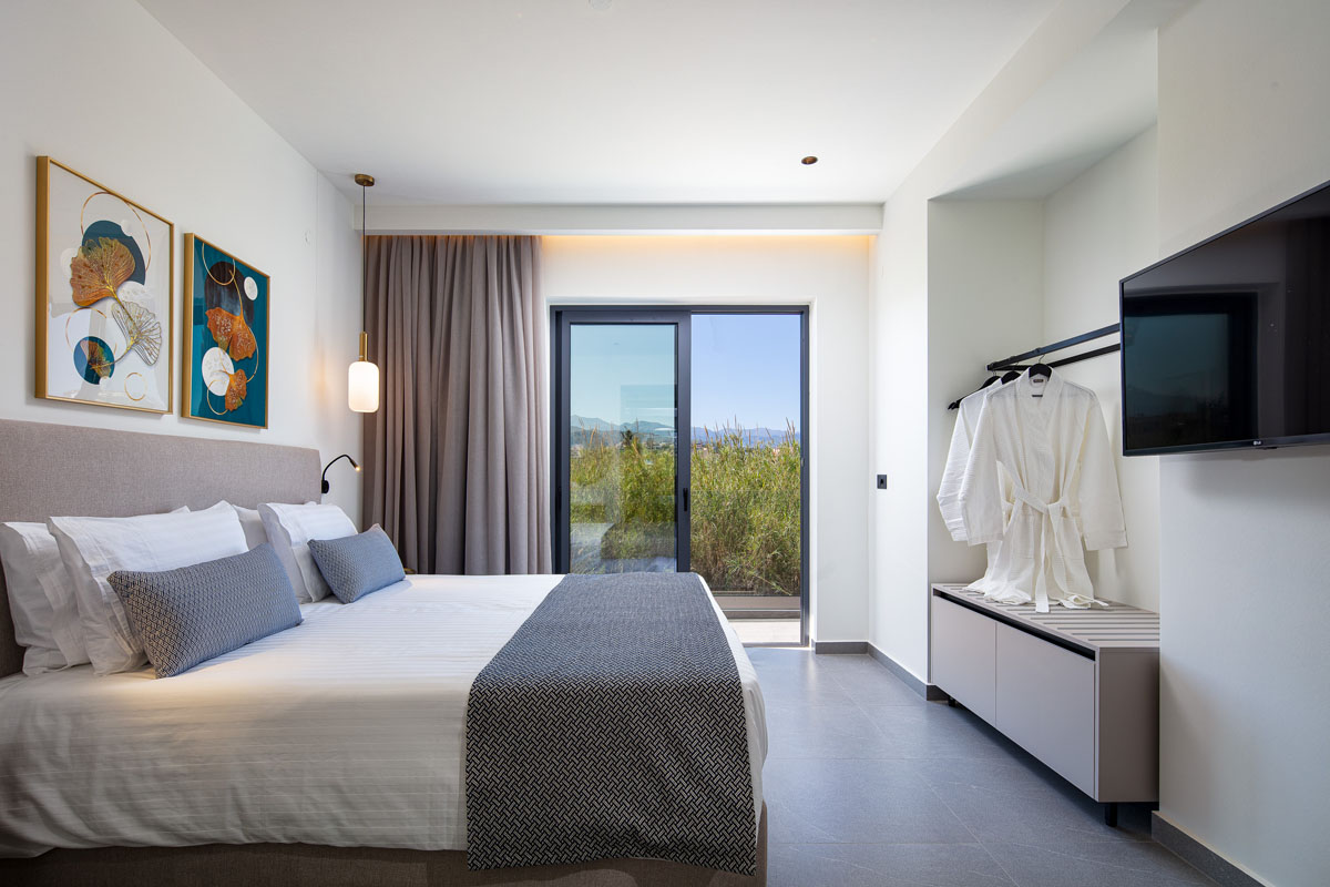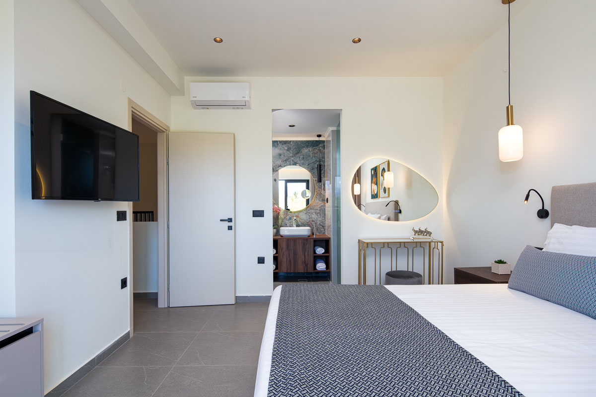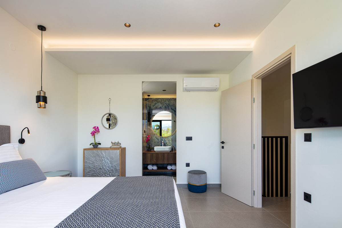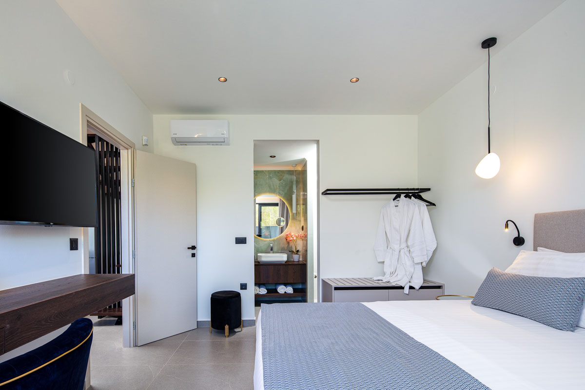 Coco-Mat mattress, air conditioning, a 44’ Smart TV, an ensuite bathroom with a walk-in