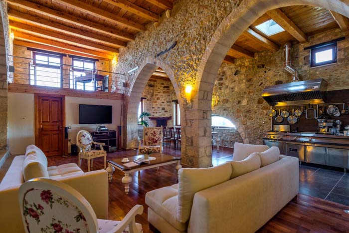 Villa Zeus is a luxurious stylish villa, set in a delightful part of Crete, in the historic village of Maroulas overlooking the bay of Rethymnon. This former olive oil factory, dating from the Venetian era, offers a magnificent view to the Aegean Sea and Mount Psiloritis.